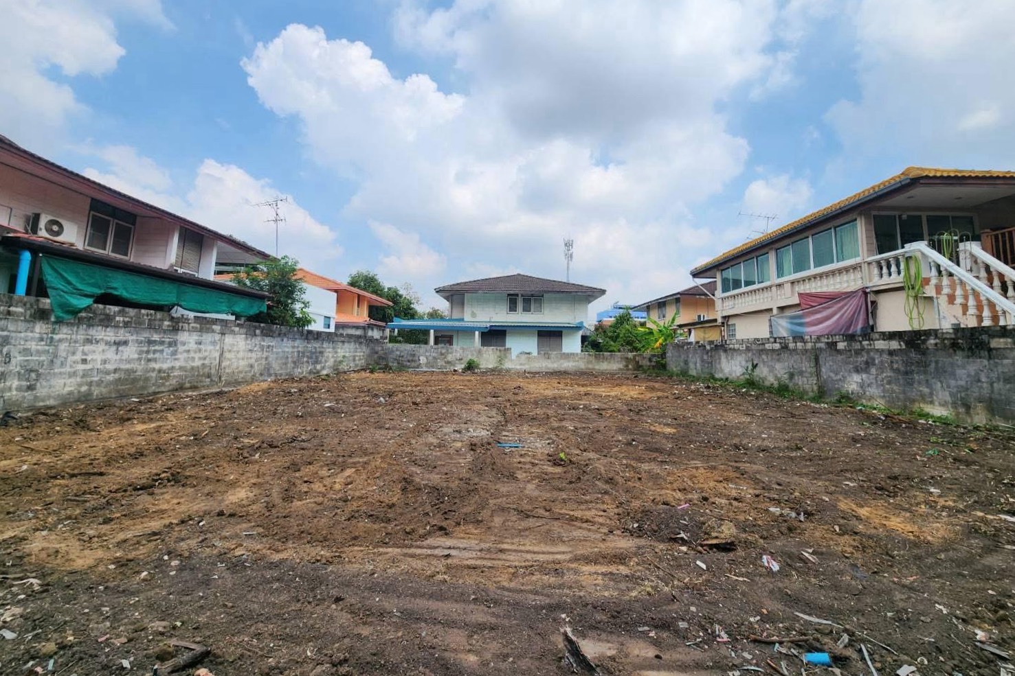 เราจัดหนักจ้างแม็คโคร คันใหญ่ ลงพื้นที่จัดการเคลียร์หน้าดินเองกับมือ ไม่ใช่แค่เอาดินมาเทกองๆ ไว้ แต่เราทำการ ถมดิน และเกลี่ยปรับระดับให้เรียบกริบ ทั่วทั้งแปลง 100 ตารางวา เคลียร์เศษปูน เศษวัชพืชออกเกลี้ยง ดินแน่น สวย พร้อมให้ผู้รับเหมาเข้ามาตอกเสาเข็มสร้างบ้านได้ทันที ประหยัดเวลาคุณไปได้เยอะมาก